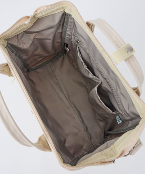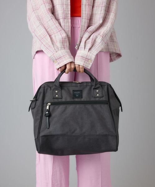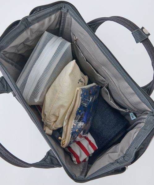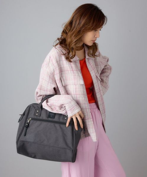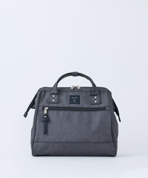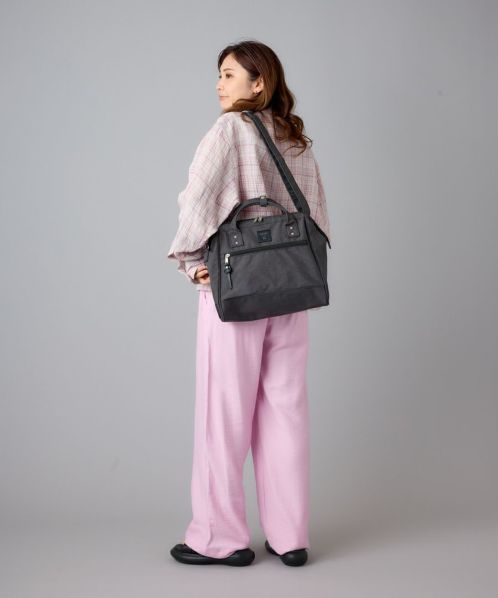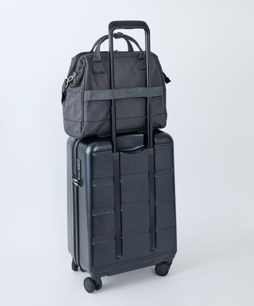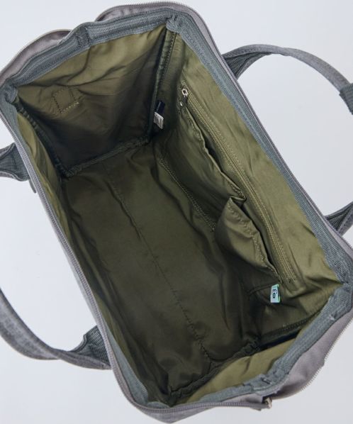 ペットボトルリサイクル生地のREPREVEに、風合い豊かな杢糸生地が登場!ファスナーや刺繍ネーム、引手パーツを本体と同色にし、艶をおさえたシルバー金具で全体のバランスをとりました。口金型のA4サイズが収納可能なショルダーバッグ。すっきりとした見た目でマチは14cmと意外としっかりと荷物が入るのがうれしいポイント。キャリーオンテープ付きなので旅行の手持ちバッグとしても便利。