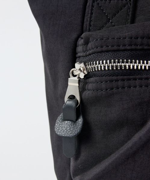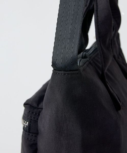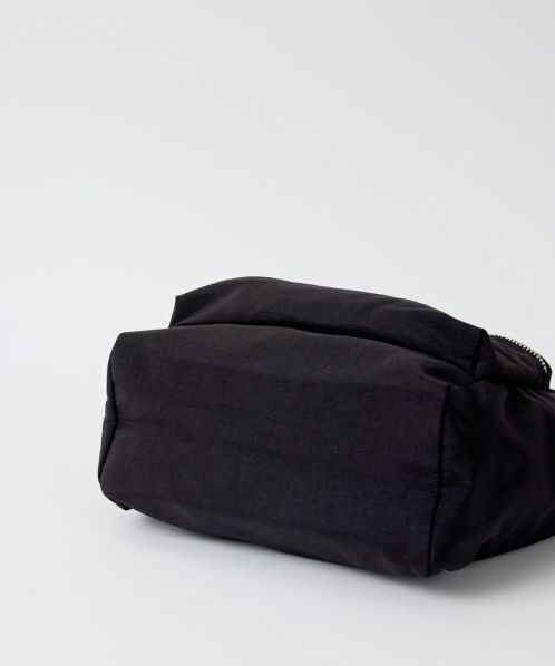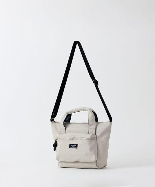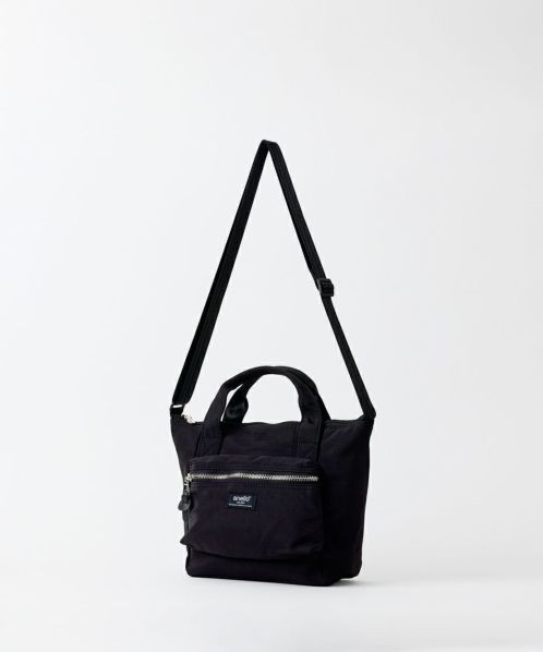 洗いシワのようなヴィンテージ感のある風合いが特徴の生地を使用。風合いを活かすためバッグのデザインは極力シンプルに。使い勝手のいい2WAYミニトートバッグ。小ぶりな前面ポケットは立体的な構造なのでリップやイヤホン等がしっかりと収納できます。
