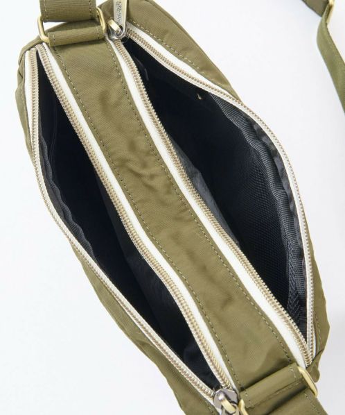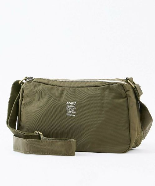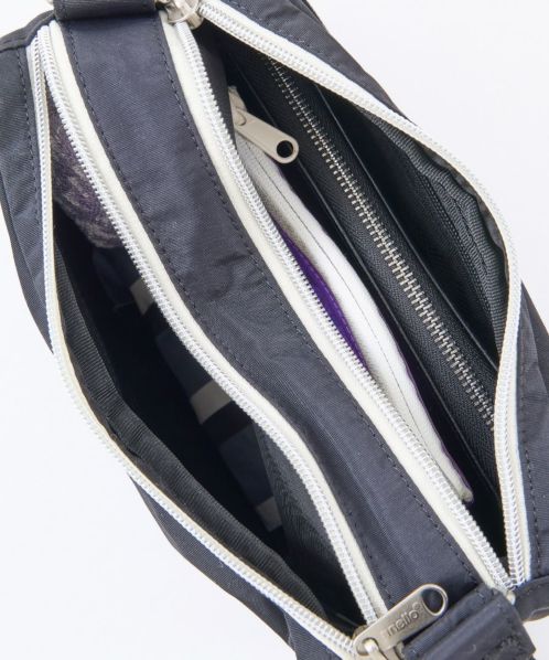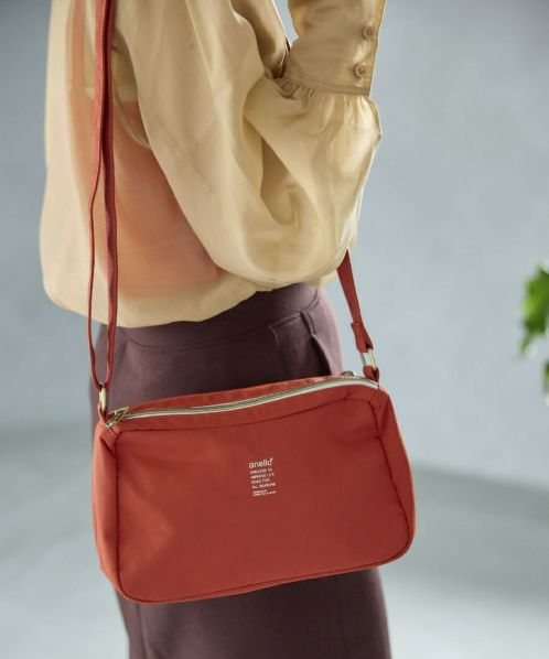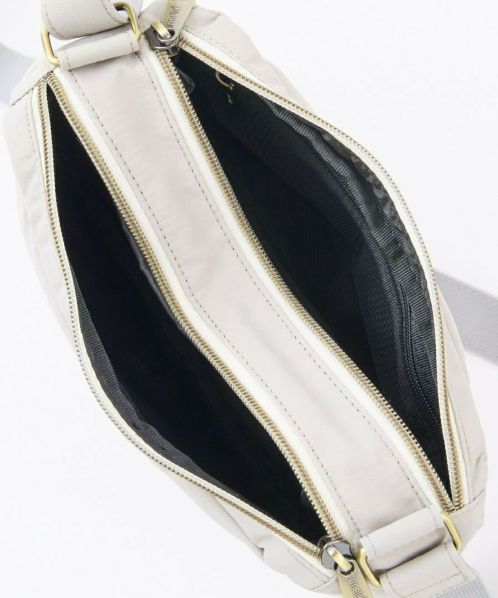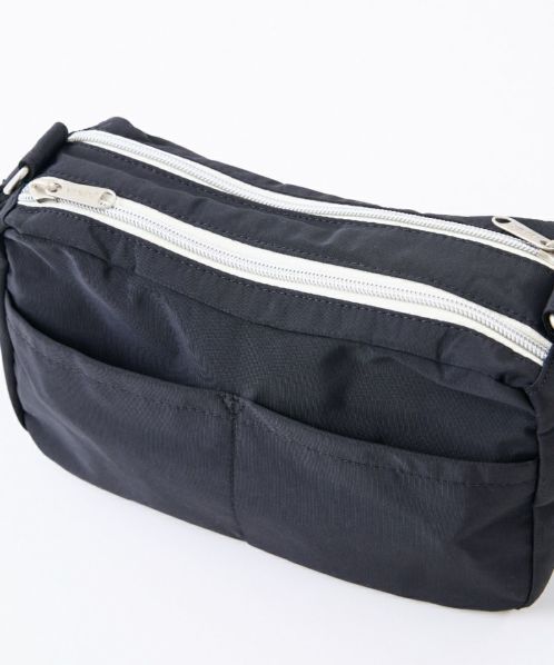金属カラーのパーツがアクセントの、PARADE(パレード)シリーズ。さらっとした軽量ナイロン生地の、軽く持ちやすいバッグです。嬉しい両面撥水仕様で、ポケットもたくさん。便利な2層ミニショルダーバッグ。トレンドの横長デザインで、気分新たにお出かけできます。