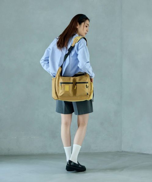 「もっと自由に、もっと便利に。」両面はっ水生地+ 止水ファスナーを使用したEXPAND5シリーズが登場。濡れてもさっと拭き取れ、雨の日でも気兼ねなく使える。肩に負担がかかりにくい厚手のショルダーパッドと、体に沿うシルエットが特徴のショルダーバッグ。A4サイズが収納可能で、前面の立体ポケットは実用性を兼ね備えたアクセント。