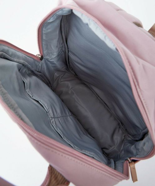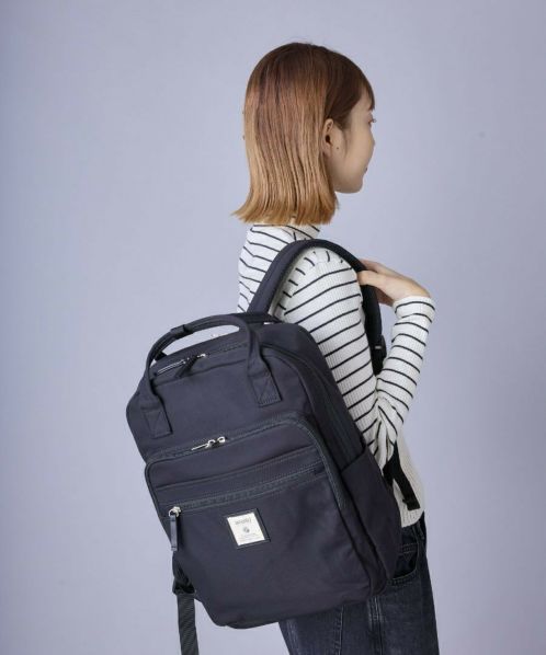 バイカラーのパイピングデザインと使い合わせの合皮がアクセントになったスクエア型のリュック。前面のポケットは大きく開けやすく、中身の出し入れがしやすくなっております。背面にはPCが収納可能でA4サイズで通勤や通学にも最適です。