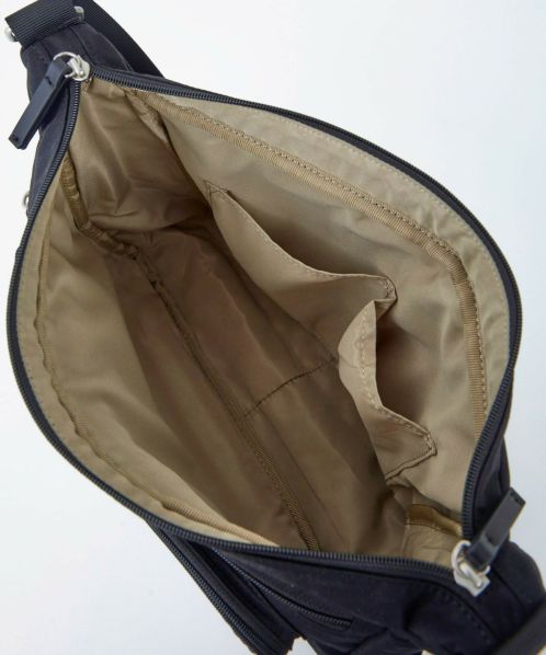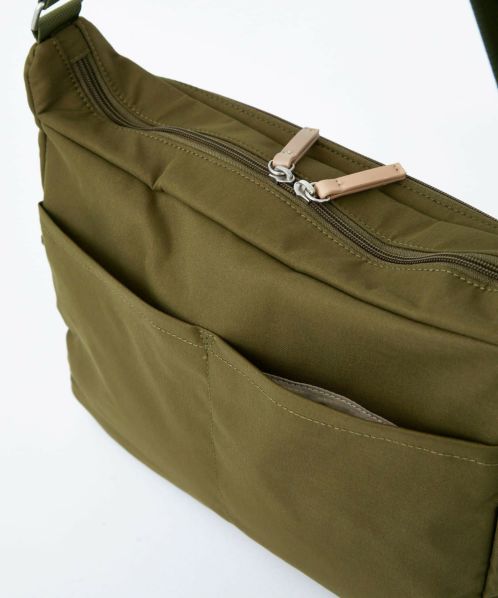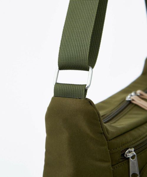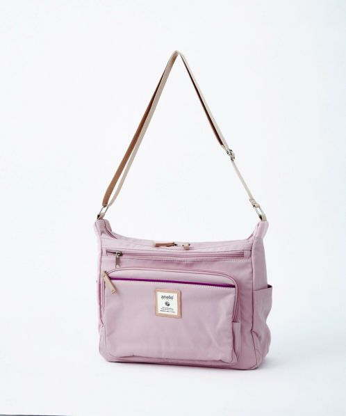 バイカラーのパイピングデザインと使い合わせの合皮がアクセントになったミニショルダーバッグ。柔らかい手触りのツイルポリエステルを使用しました。合皮を使い合わせることにより高級感のある雰囲気に。A4サイズがしっかりと収納でき、更に10ポケット仕様の機能性抜群なショルダーバッグです。