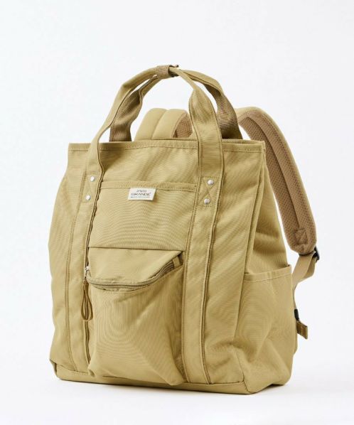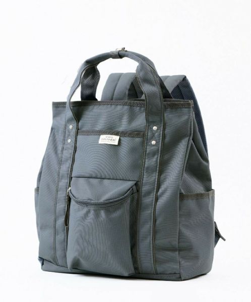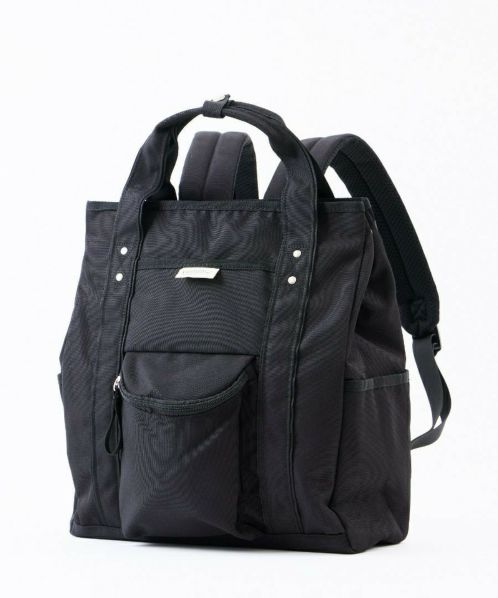 はっきり鮮やかカラーの生地でカジュアルなファッションに合わせやすい、DRIVE(ドライブ)シリーズ。ツヤなしのシルバー金具や、コットン生地のネームタグがアクセント。嬉しい両面はっ水仕様。10ポケットの多機能トート型リュック。前面の半円立体ポケットがポイント。外側サイド上部のホックを開け閉めし、2つのシルエットに切り替えできます。A4書類が収まるサイズで、13インチのPC収納付き◎