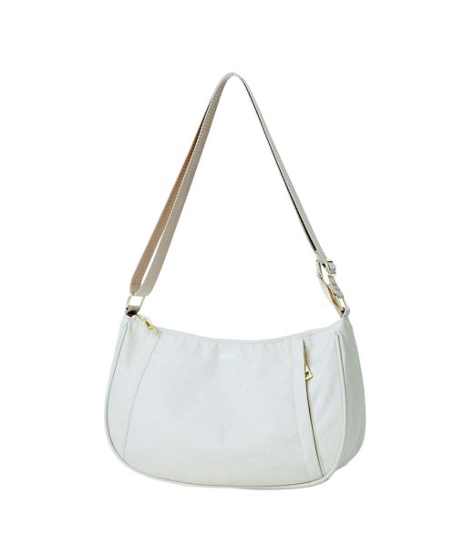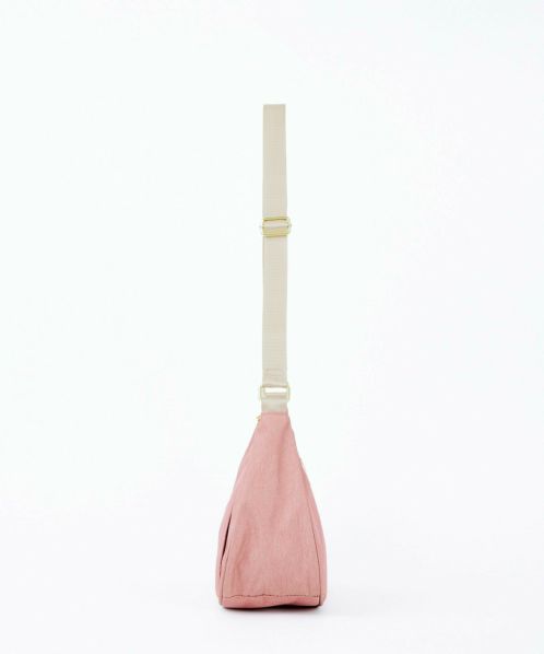 杢調ポリエステル生地にゴールド金具を使用し、カジュアル過ぎないデザインに仕上げました。内生地にも撥水加工を施しているので、内側も汚れにくい嬉しい仕様。A5サイズ収納可能でちょっとしたお出かけや買い物に最適です。