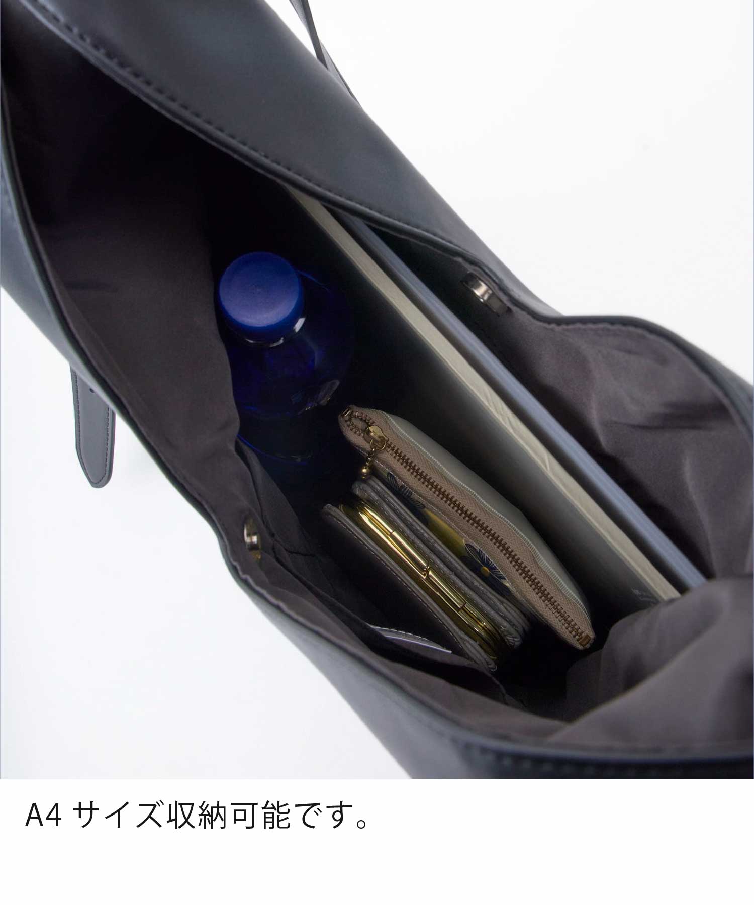 Vカットデザインの開口部が特徴的なV-shapedシリーズ。Vカットの開口部は、デザインだけでなく腕通しもラクで、身体にもフィットします。A4サイズも収納可能で、ショルダーは斜め掛けもワンショルダー持ちもできる2WAY仕様。荷物が多い日や通勤で活躍するバッグです。