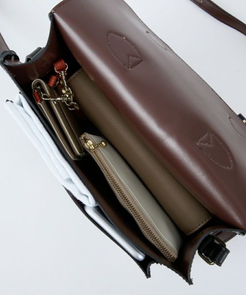 オンオフ使える・お手入れ簡単・とにかく軽い!助かる3つのポイントが嬉しい「たすかるっかばん」シリーズ。傷や汚れが目立ちにくく、水に濡れてもさっと拭ける素材が魅力!高級感のある見た目に対し、軽量なので使いやすいアイテム。レトロ感のあるサッチェルショルダーバッグ。長財布や500mlペットボトルが横位置に入るサイズ感です。