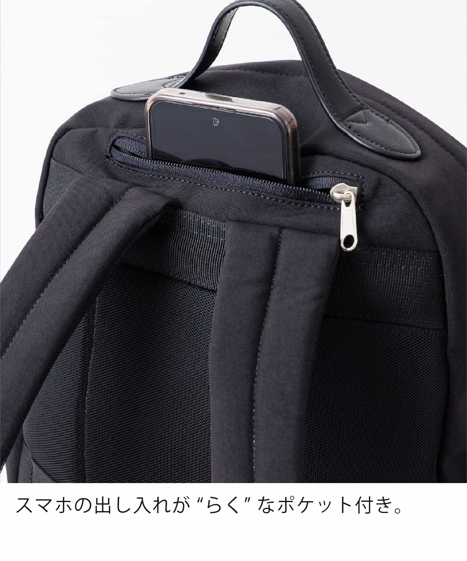 素敵に快適!ナチュらくバッグ シリーズです。あえて金具感を極力なくして、ナチュラルな仕上がりを意識しました。ナチュラルで、“らく”を意識したアイテムです。◎開閉が “らく” なループ状の引き手。◎雨の日でもお手入れ “らく” な撥水加工。◎スマホの出し入れが “らく” なポケット付き。