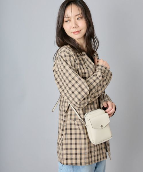 「 オンオフで使える軽いカバン 」をコンセプトに開発した合成皮革を使用したシンプルなデザイン。コンパクトなサイズ感ですが、スマホ・三つ折り財布・エコバッグなど、最低限の荷物が入るので、これ一つでおでかけができます。