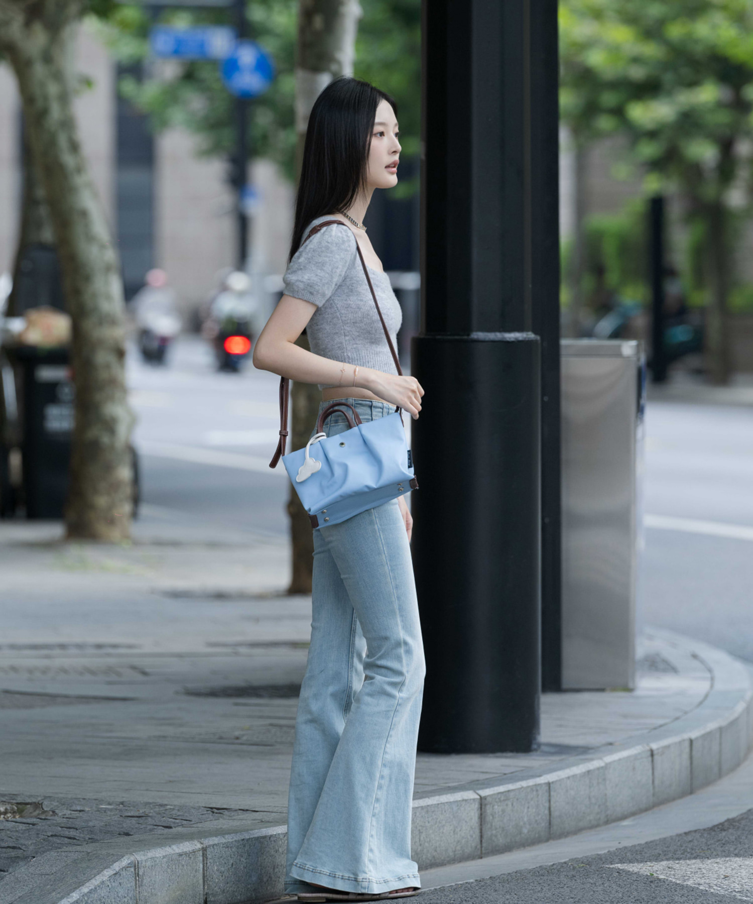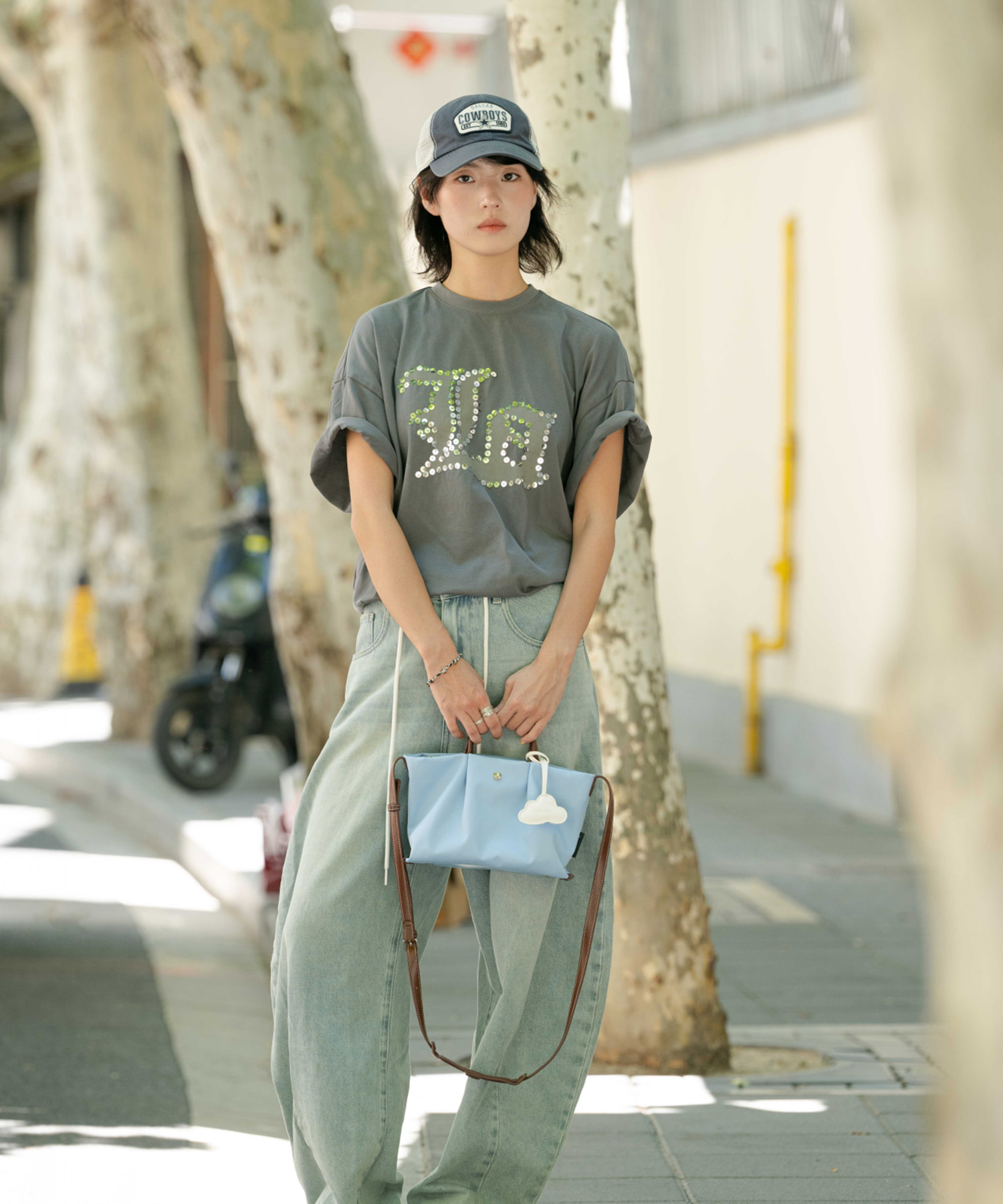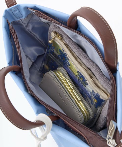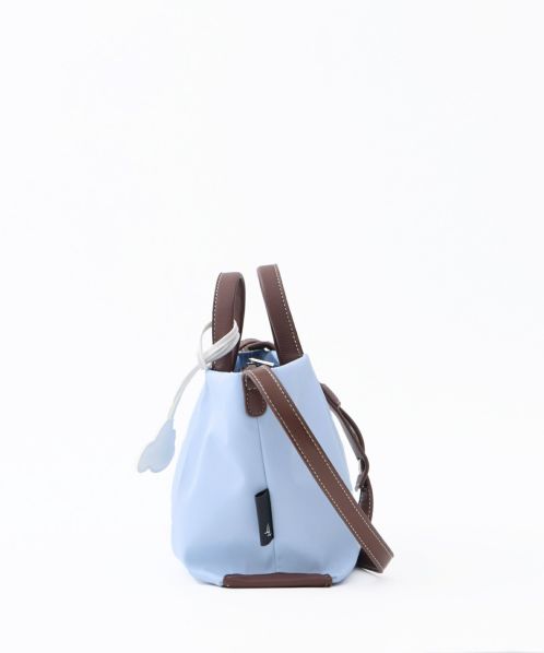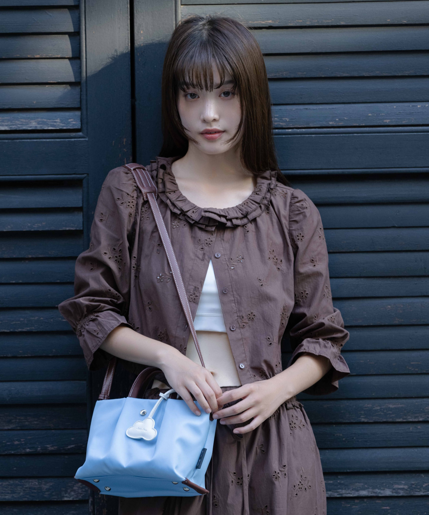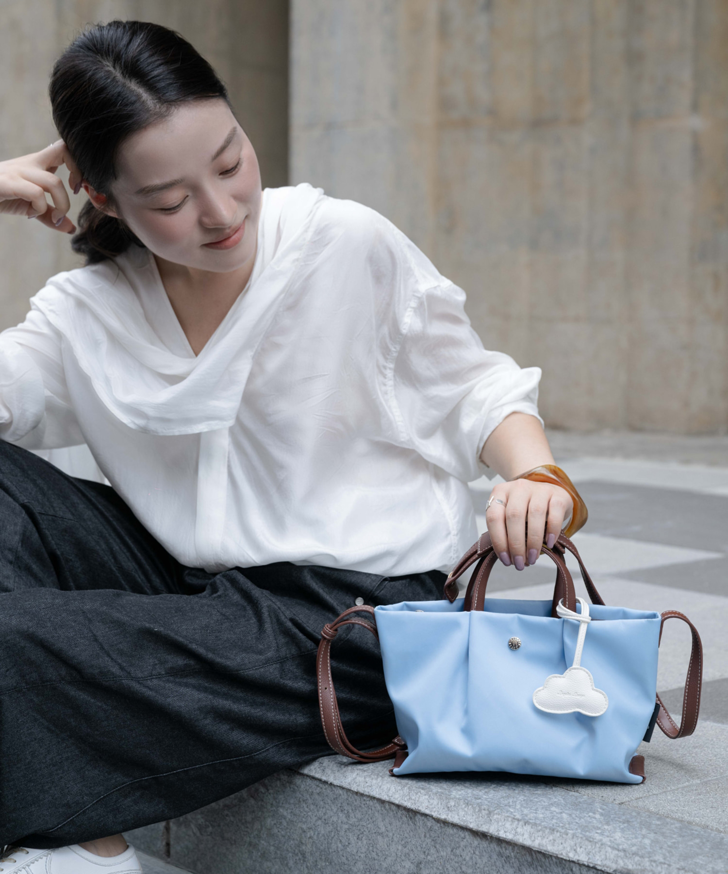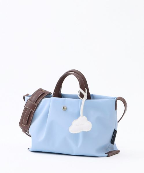 長らく愛されてきた肩楽(かたらく)シリーズ。上品な光沢のあるナイロンに、手触りの良い柔らかい合皮を使い合わせました。ライトブルーのカラーに白い雲のチャームがアクセント。どんなコーディネートにも自然に溶けこみ、さりげない可愛らしさをプラスします◎