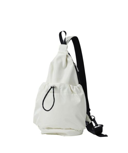 くしゅくしゅとしたフォルムが可愛い、トレンドのドロストポケットがポイントのカジュアルなシリーズ。生地はシャリっとした張り感と光沢のある撥水素材を使用しております。柔らかく軽量で、機能性もバッチリ◎両サイドファスナー式で左右から持ち物を取り出すことが可能。両手をあけたいアクティブなシーンにもぴったりなアイテム。