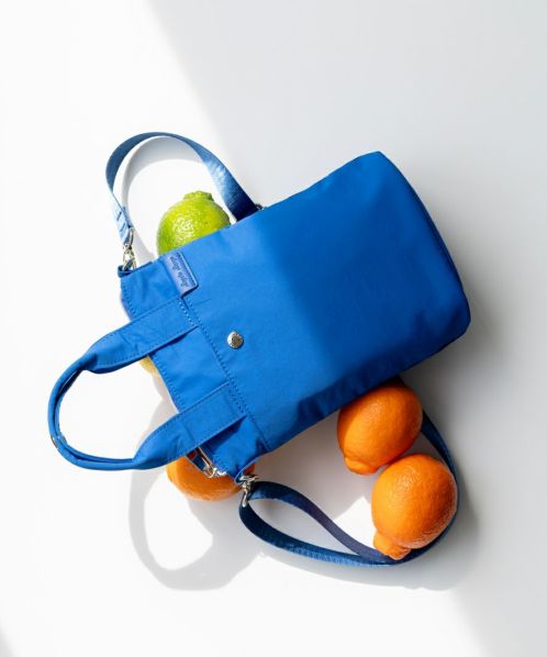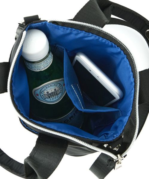 夏のおさんぽはこれ1つで完結!必需品を全部持ち歩ける身軽バッグ!サラリとした生地感で、外も中も両面撥水仕様なので梅雨?夏の雨や蒸し暑さの対策にぴったりなシリーズです。遊び心のあるカラフルな内生地配色もポイント。前面ポケットはスマホが入るサイズ感。ハンディファンと500mlペットボトルが同時に収納可能。夏場のフェスや愛犬とのお散歩などにもおすすめです。