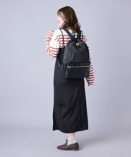 LegatoLargo®で人気の10ポケットリュックが撥水バージョンで新登場です。シンプルなデザインと、10個のポケットが生む優れた収納力が魅力のリュック。バランスよく配置されたポケットは、荷物をたくさん収納してもリュックのシルエットが崩れないこだわりの配置!リュックの外側にもポケットが充実しているので、利便性も◎背面側には、背負ったまま片手で出し入れできる直結ファスナーと、さらに長財布などを入れておけるファスナーポケットが付いて機能性のこだわりが詰まったアイテム。
