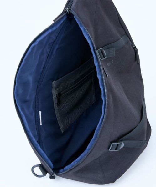 タウンユースに特化したクロスボディバッグ。左右どちらからもメイン収納へアクセスできる。体のラインに添う三角シェイプで、荷物があってもスマートに見えるデザイン。よりシンプルに。よりスタイリッシュに。大容量でA4ファイルも収納可能。