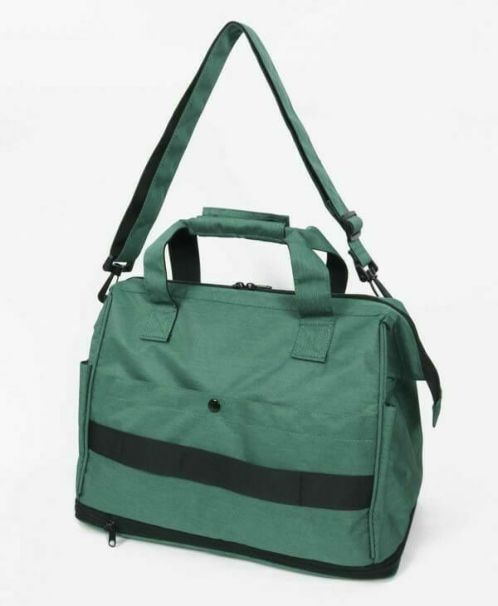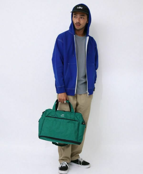 撥水加工を施した生地を使用。用途に合わせて拡張できる仕様が魅力的なポイントです。取り外し可能なショルダー付き。背面側にはキャリーハンドルに通すための面ファスナーが付いており、キャリーに載せても安定してズレが気になりません。オンオフ問わず、通年幅広いシーンで活躍してくれること間違いなしです。