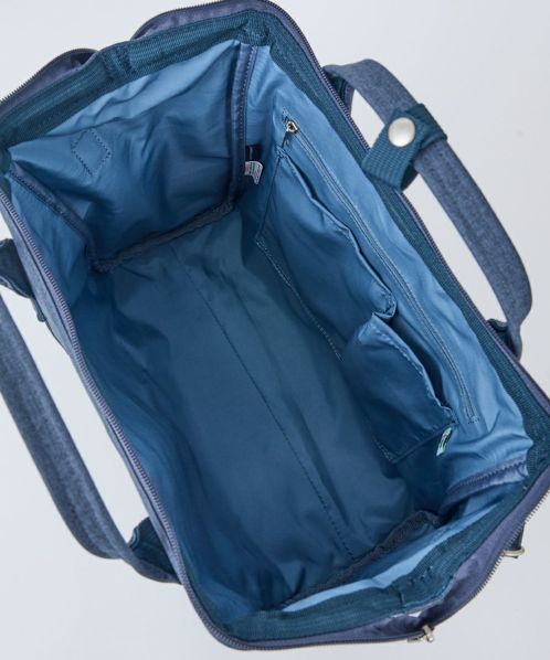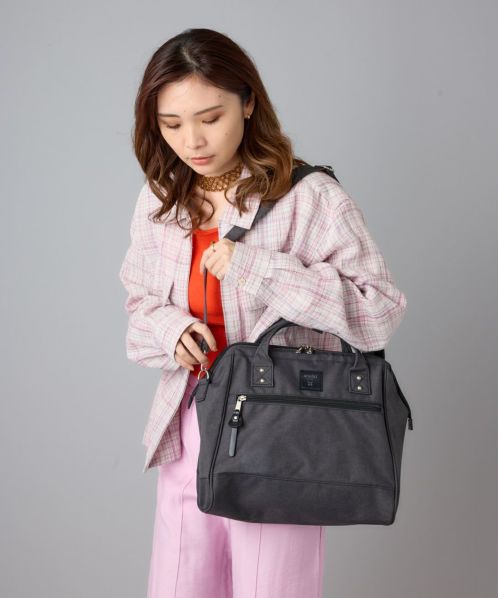 ペットボトルリサイクル生地のREPREVEに、風合い豊かな杢糸生地が登場!ファスナーや刺繍ネーム、引手パーツを本体と同色にし、艶をおさえたシルバー金具で全体のバランスをとりました。口金型のA4サイズが収納可能なショルダーバッグ。すっきりとした見た目でマチは14cmと意外としっかりと荷物が入るのがうれしいポイント。キャリーオンテープ付きなので旅行の手持ちバッグとしても便利。