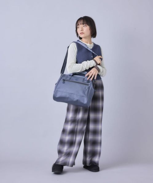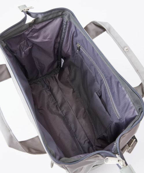 人気の“EXPAND” シリーズの第6 弾!グレイッシュ&ペールトーンカラーのはっ水光沢ポリエステルツイル生地を使った、品のある仕上がりのコレクション。開口部がガバっと開く、anello® の定番口金ボストンバッグ。荷物がたっぷりと入る大きめサイズ。背面にキャリーオンテープを搭載。見た目以上に荷物が入るから様々なシーンで活躍しそう。
