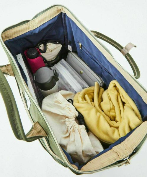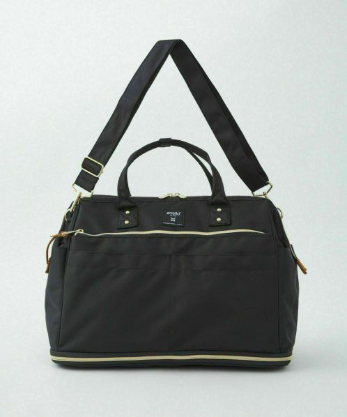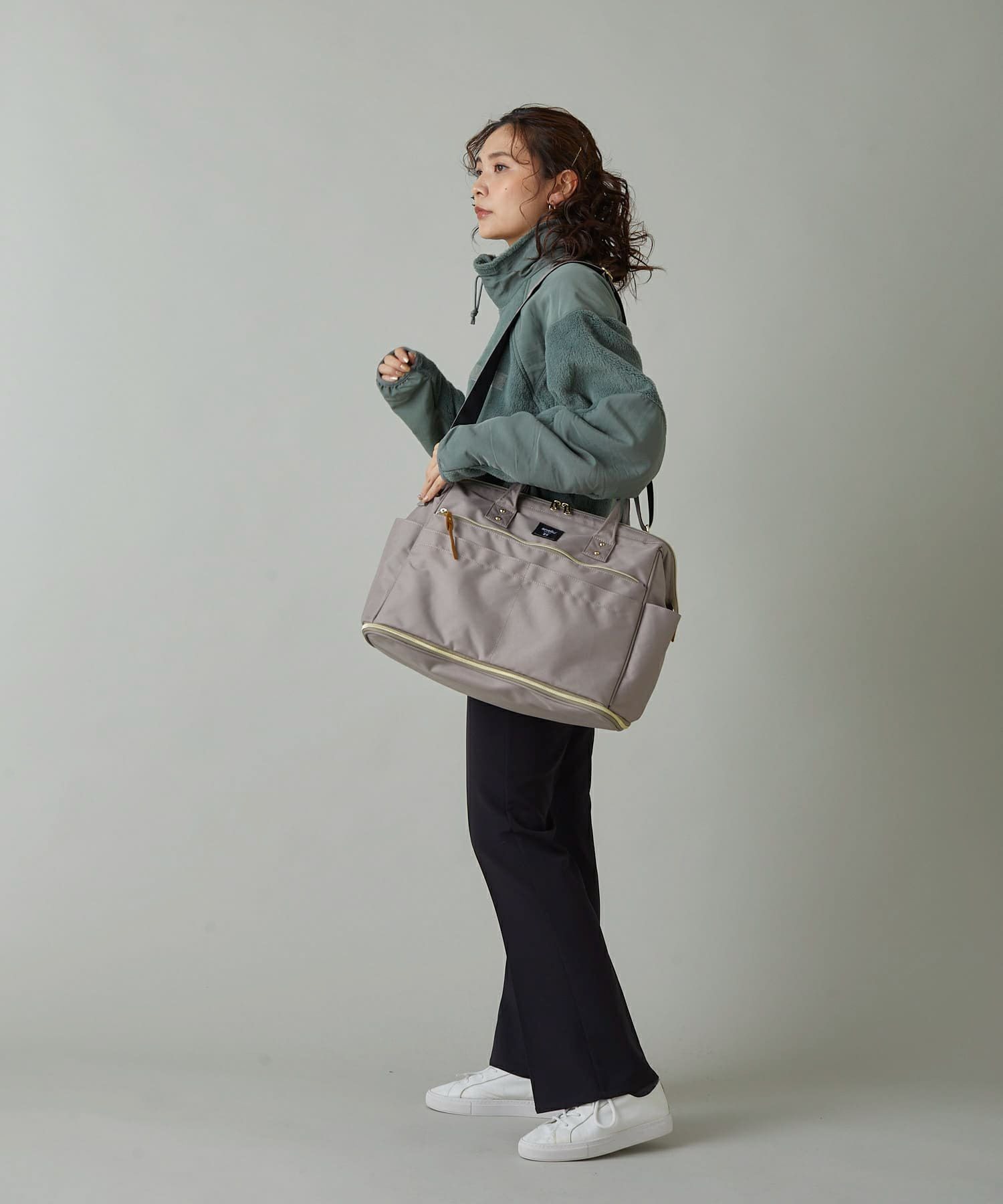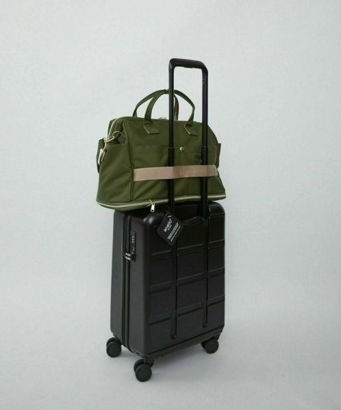 ペットボトルをリサイクルしたREPREVE®にはっ水加工を施し、anelloのアイコンシリーズを刷新。さらに、本革スエードからエコスエードに変更しました。用途に合わせて容量を拡張できる仕様が魅力的。背面側にはキャリーハンドルに通すための面ファスナーが付いており、キャリーに載せたときに安定します。取り外し可能なショルダー付き。