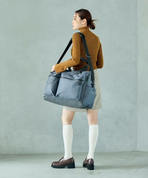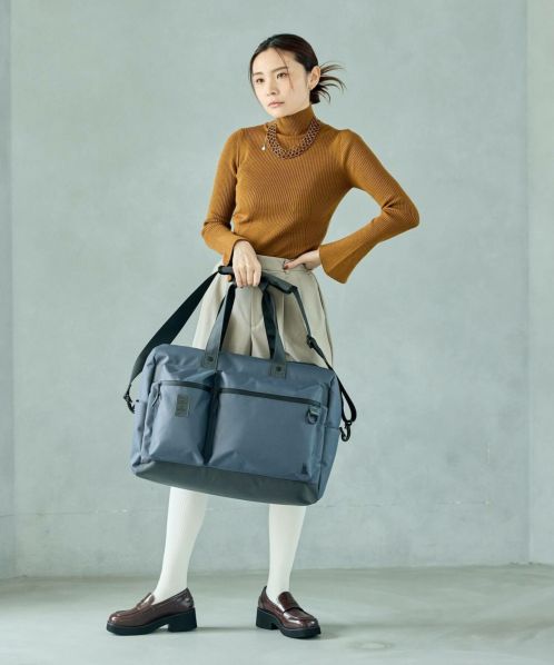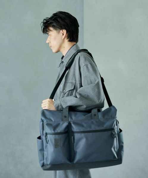 「もっと自由に、もっと便利に。」両面はっ水生地+ 止水ファスナーを使用したEXPAND5シリーズが登場。濡れてもさっと拭き取れ、雨の日でも気兼ねなく使える。35Lと大容量のボストンは旅行や出張で活躍できる優秀アイテム。前面の立体ポケットを含む全10個のポケットは、デザイン性と実用性を両立。