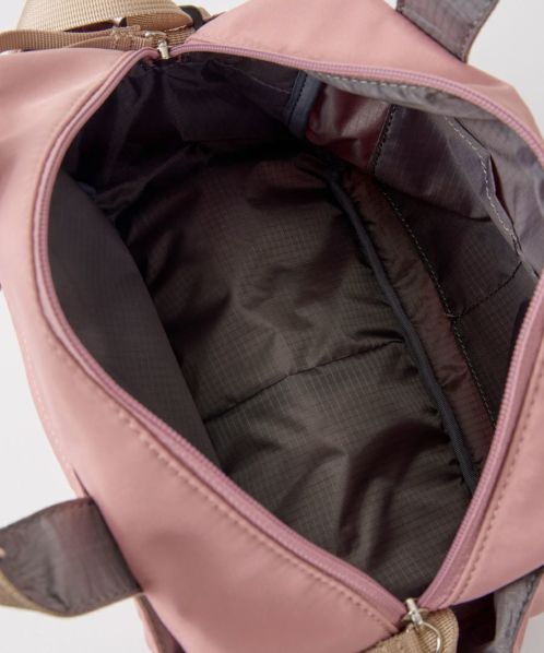 花のつぼみをイメージしたIRISシリーズ。さらっとしたコットン調生地ところんと丸い形で上品な雰囲気に。シリーズ共通の曲線デザインを活かし軽量素材で両面撥水加工なのが嬉しいポイント◎生地とテープの配色がさりげないポイントのミニボストンバッグは広マチで見た目以上に大容量。長めのループ引き手で開け閉め楽々。