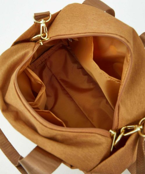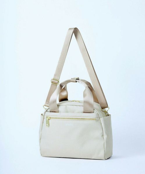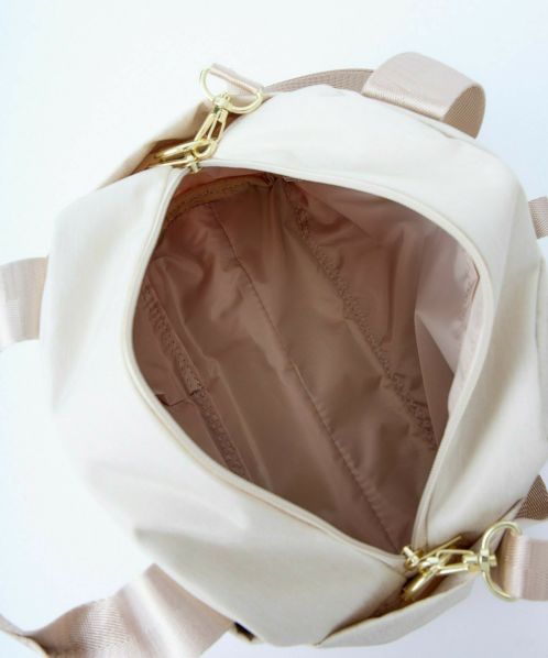 杢調ポリエステルにゴールドファスナーが上品なGLシリーズ。丸いシルエットの見た目が可愛いだけではなく、ポケットが10個も付いていて機能性も抜群◎財布、500mlペットボトルも収納可能で、軽量なのも嬉しいポイント。両面撥水加工で雨の日のお出かけにも安心です。2WAY仕様で用途や気分に合わせて変えれるのも魅力。