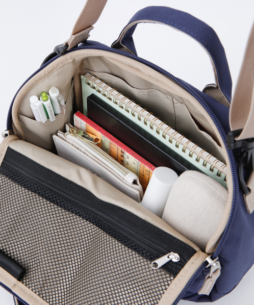 バッグとして使いやすいのは勿論、置くと更に便利機能が満載の「置けルンです」シリーズ。撥水加工を施しているので、雨や汚れに強いです。ちょっとしたお出かけにぴったりなミニボストンバッグ。充実した内ポケットで荷物の整理が楽々です。