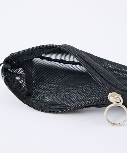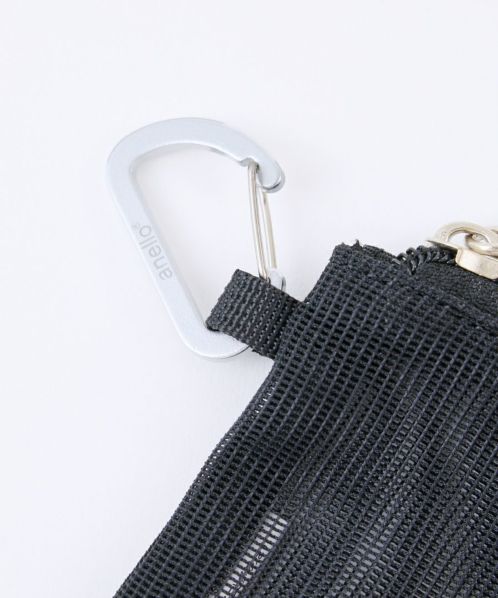 中身が見えるので探し物迷子にならず便利なポーチ。カラビナ付きなのでベルトループやバッグにつけてアクセント。