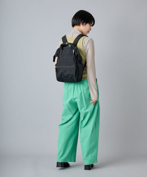 キャンバス調の生地にトレンド感のあるロゴを刺繍しました。軽く、洗濯機でのお手入れが可能でラフに使えるのが魅力。アイコンの口金リュックも、刺繍ロゴデザインで新鮮な雰囲気に。500mlのペットボトルよりも軽い400gと軽量で、背負っていても負担になりにくいのがうれしいポイント。※この製品は洗濯後に乾燥が不十分な場合、金具・部材の劣化や生地の臭いの発生等の可能性がございますのでご注意ください。