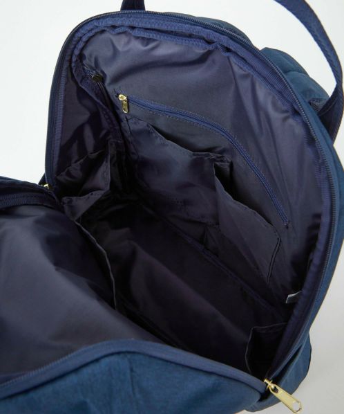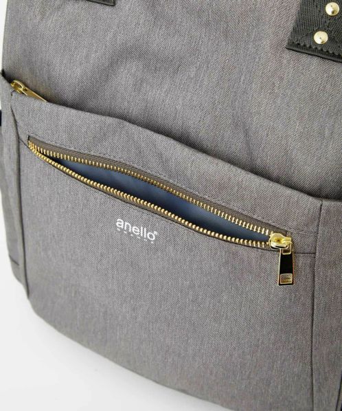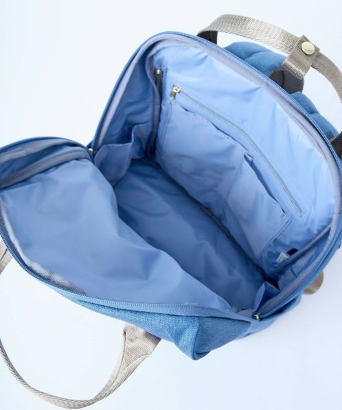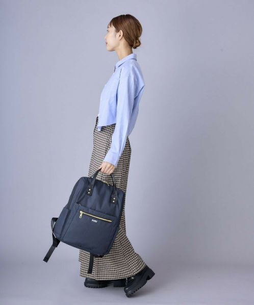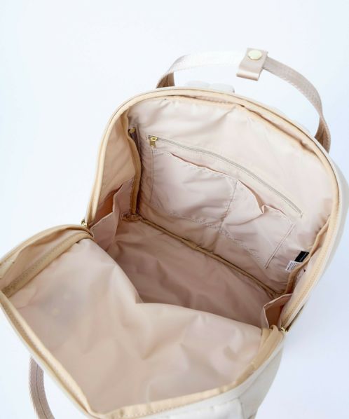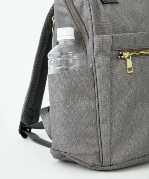 杢調ポリエステル生地にゴールド金具を使用し、カジュアル過ぎないデザインに仕上げました。内生地にも撥水加工を施しているので、内側も汚れにくい嬉しい仕様。開口部が大きく開くので、荷物の出し入れがとっても楽々です。10ポケットで小物収納もバッチリ。マザーズバッグとしてのお使いも◎
