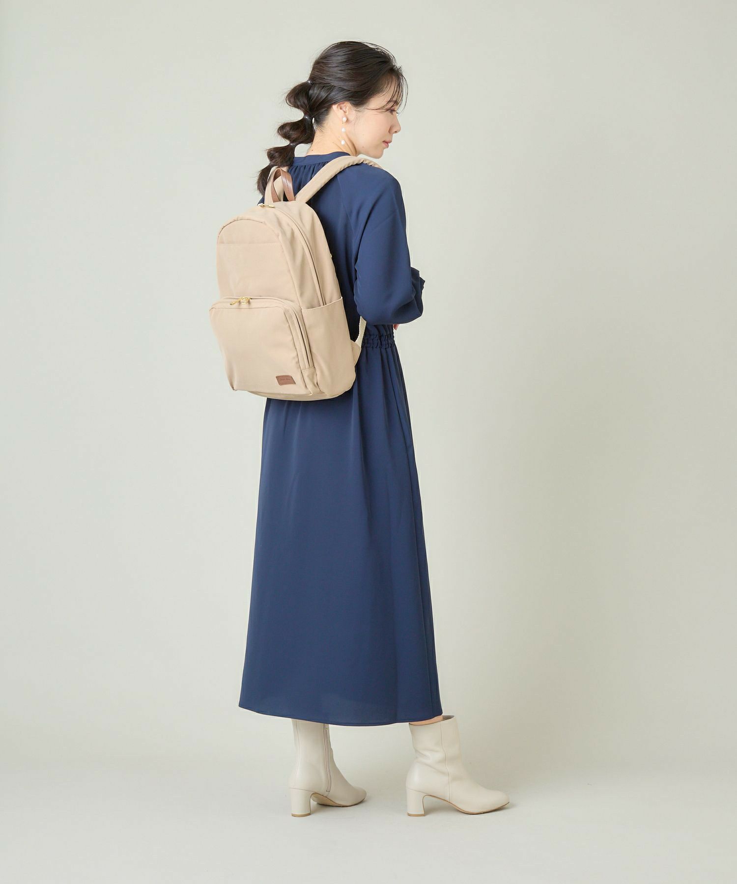 撥水加工を施したコットン調ツイル素材を使用したリュックです。シンプルで飽きのこないデザインに仕上げたので長くお使いいただけます。10の便利なポケットが付いていて、全面のファスナー収納はじゃばら付きで大きく開いて中身が見やすいです。背面にはメイン収納への直結ファスナーとセキュリティポケットが付いています。