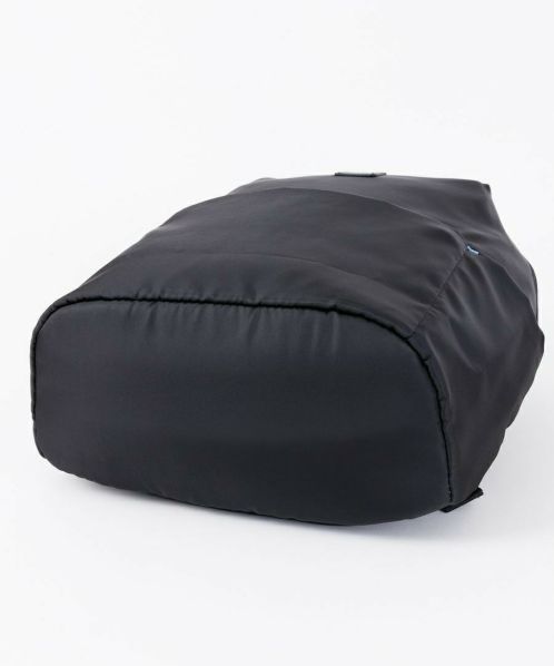 上品なツヤ感のある撥水・抗菌加工を施した生地を使用したアイテム。立体的なアウトポケットや配色ステッチがこだわりのポイント。雨の日に濡れてしまっても気にせず快適に使える機能的なシリーズです。A4ノートや13インチのPCが入るサイズのリュック。ポケットは7箇所あり、背面にはセキュリティポケットがついていてお財布の収納も安心です。荷下ろしする際、手でも持ちやすいよう上部にハンドルがついている便利な仕様。スリムな印象ですが、13Lの容量があり、荷物が多くなりがちな方にもおすすめです。