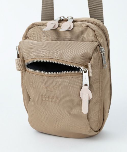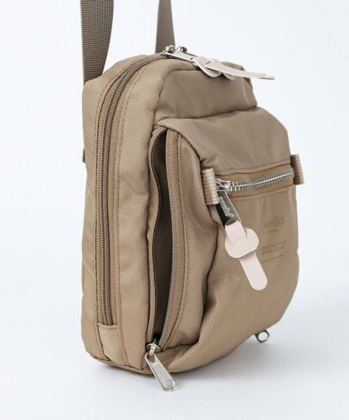程よい光沢のポリエステル生地にシルバージップがアクセントの"THREE"シリーズ。前面にはアクセスの良い3つのアウトポケットを装備し、使いやすさとデザイン性を兼ね添えたシリーズ。中身がお財布機能になっているミニバッグ。母子手帳やカード、パスポートも収納可能で買い物や旅行にも最適です◎