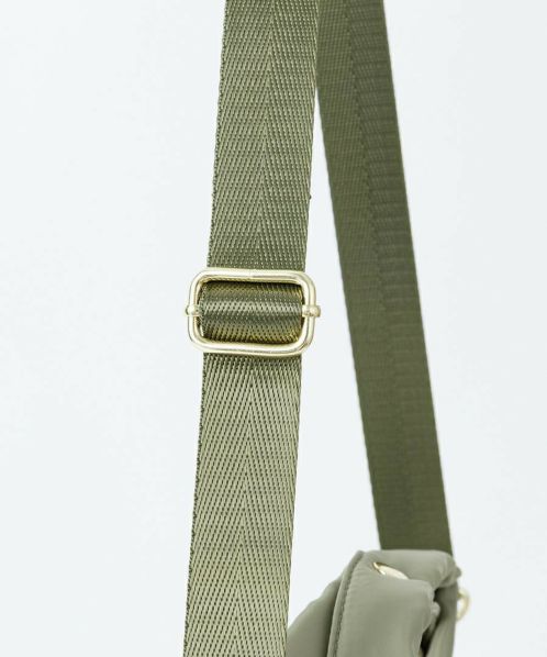 トレンドのヘルメットバッグを、上品なツヤ感のあるはっ水ポリエステルとゴールド金具を合わせ、キレイめな雰囲気に仕上げたシリーズ。機能性はそのままに、アーミーなアイテムを大人っぽくカジュアルに楽しめるデザイン!スプリングホック付きのもっちりハンドルで使い易さも◎ 開口部はファスナー付きで安心の仕様。ワンハンドルとショルダーの2WAYで使えるので、さまざまなシーンに対応します。前面のシングルポケットは二つ折りの財布も収納できる便利なサイズ感です。