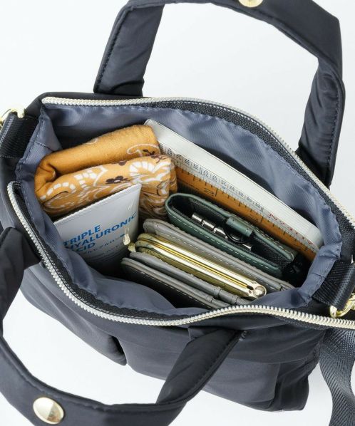 トレンドのヘルメットバッグを、上品なツヤ感のあるはっ水ポリエステルとゴールド金具を合わせ、キレイめな雰囲気に仕上げたシリーズ。機能性はそのままに、アーミーなアイテムを大人っぽくカジュアルに楽しめるデザイン!スプリングホック付きのもっちりハンドルで使い易さも◎ 開口部はファスナー付きで安心の仕様。ワンハンドルとショルダーの2WAYで使えるので、さまざまなシーンに対応します。前面のシングルポケットは二つ折りの財布も収納できる便利なサイズ感です。