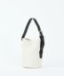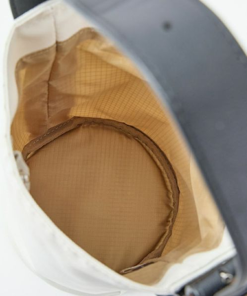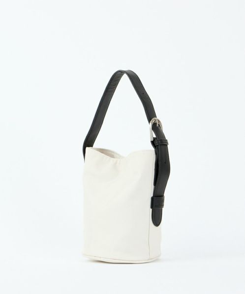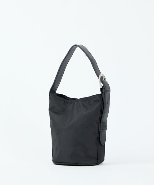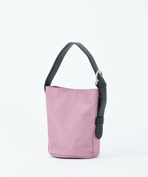 光沢ある生地と細かなシボ合皮のハンドルを合わせました。裏面はPVC加工を施し他丈夫な生地を使用していて、ON/OFF問わずデイリーユースにぴったり。肩掛けはもちろんハンドバッグのように上品な持ち方も様になるバッグ。デザインポイントの丸底は見た目以上に収納力あり。