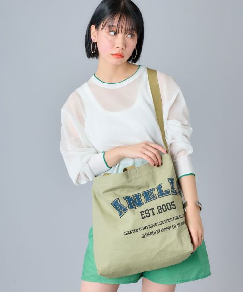 カレッジテイストなオリジナルロゴプリントが特徴のキャンバスバッグ。軽やかなコットンキャンバス特有の風合いをお楽しみいただけます。ショルダーとトートのうれしい2WAY仕様。A4サイズが入りマチもたっぷりなのでお買い物に便利♪※AIB4602とAIB4603で色味に差がございます。