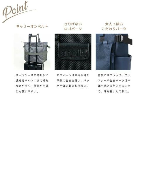 “ こうだったらいいな。“お客様の声をぎゅっと凝縮した機能性たっぷりな『Cliente(クリエンテ)』シリーズ。性別・年齢問わずに幅広い層のお客様にお使いいただけるよう、ベーシックなデザインに仕上げました。両面撥水の生地を使用し、高級感ある合皮を使い合わせが落ち着きのある印象に。底鋲やリール型キーフックがあるので、お仕事などの毎日使いでも安心感があります。ポケットは12個あり、折り畳み傘やペットボトルを立てて収納できる縦型収納を完備。持ち手は長めに設計されているので、冬場の厚手アウターを着ても窮屈になりにくいのがうれしいポイント。