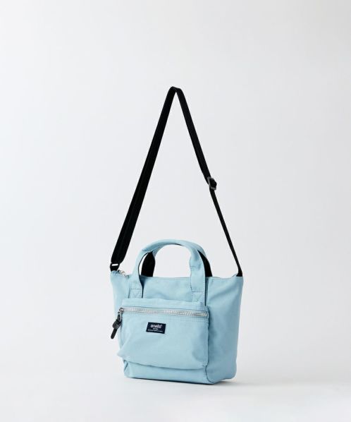 洗いシワのようなヴィンテージ感のある風合いが特徴の生地を使用。風合いを活かすためバッグのデザインは極力シンプルに。使い勝手のいい2WAYミニトートバッグ。小ぶりな前面ポケットは立体的な構造なのでリップやイヤホン等がしっかりと収納できます。