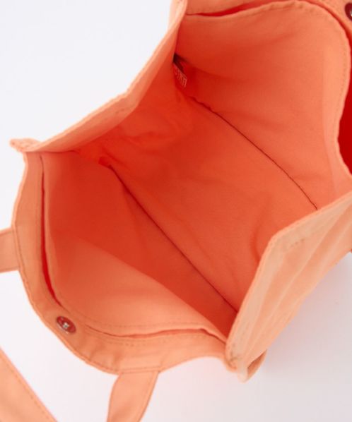 色味のいいライトオンスのキャンバス生地に同色で大きめなプリントをしたMUG(マグ)シリーズ。普段使いでも、メインのバッグと2個持ちでもかわいい。
