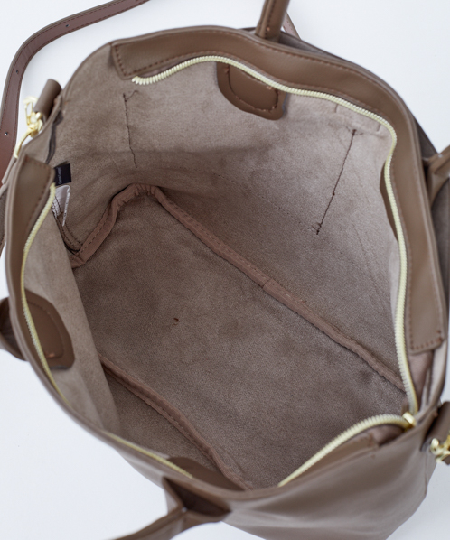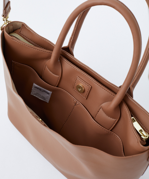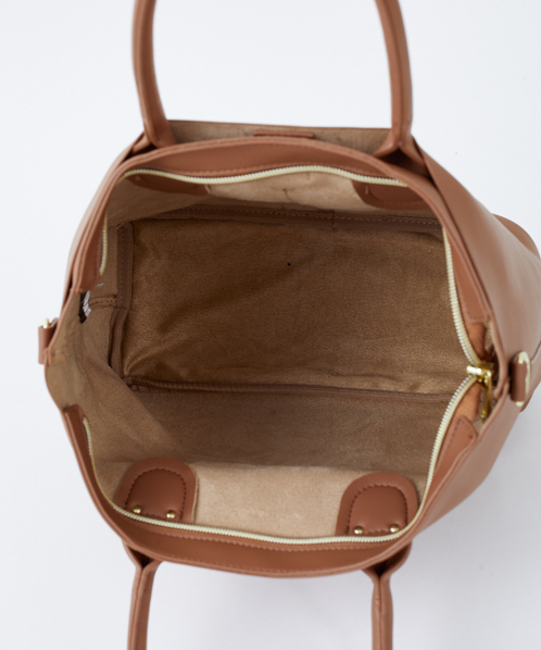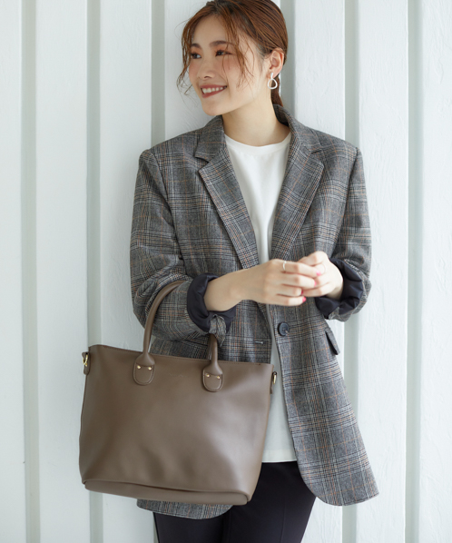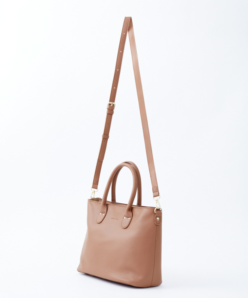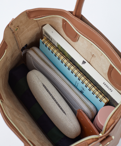 シンプルなデザインで、毎日持っても飽きのこないベーシックなバッグ。生地はしっとりなめらかな触り心地で、柔らかい印象を与えてくれます。自立するので、机や椅子に置いた時も使い勝手よく便利。手帳や筆記用具など、ちょっと荷物がある日にも活躍してくれる嬉しいサイズ感です。
