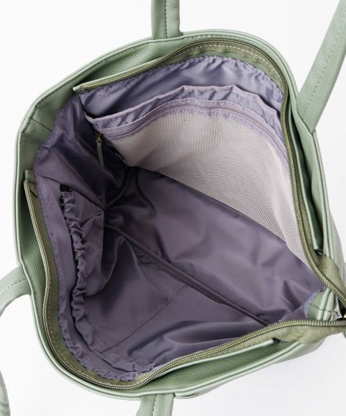 整理整頓苦手ママが考えた、気軽にざっくりたっぷり収納できるバッグ。シンプルな見た目ながら内側には、メッシュポケット・ギャザーポケット・クッションポケット!便利な3種類のポケットを装備◎自転車のカゴにも収まりやすい、ちょうど良いA4サイズ!長めのハンドルで腕周りも楽々。開口部は安心のファスナー仕様です。