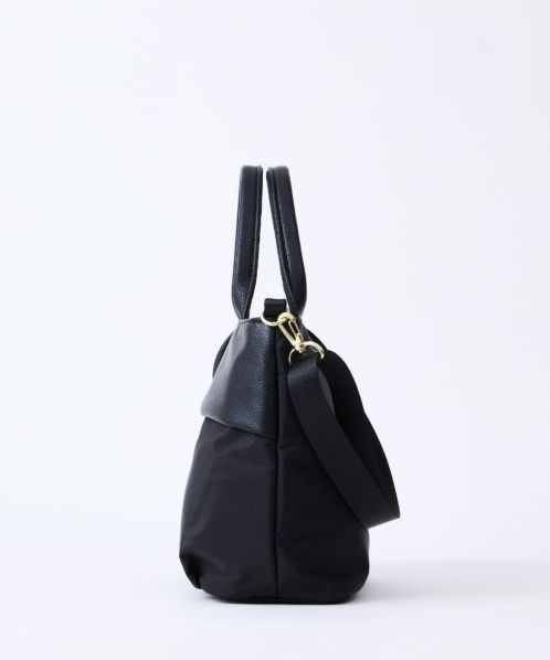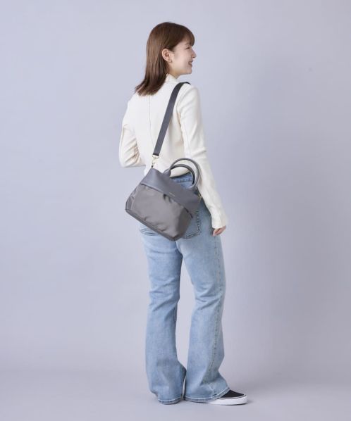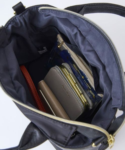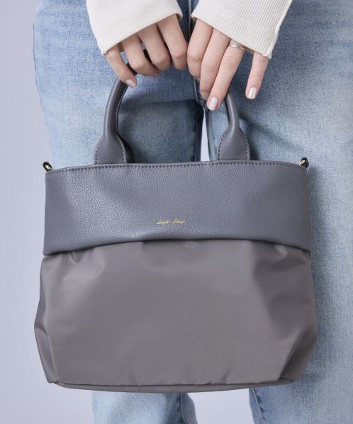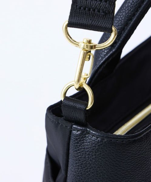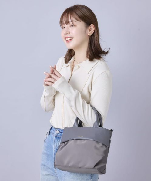 大人カジュアルなテイストで人気のグロッシーコンビシリーズに新型の2WAYトートバッグが登場!柔らかいシボ合皮とポリエステルを組み合わせ、カジュアルすぎない女性らしいバッグに仕上げました。600mlペットボトルや長財布はもちろん、荷物が多めの女性でもちょうどいいこだわりのサイズ感です。ショルダー付きで2WAYでご使用いただけます。