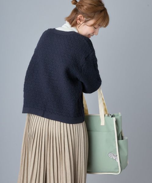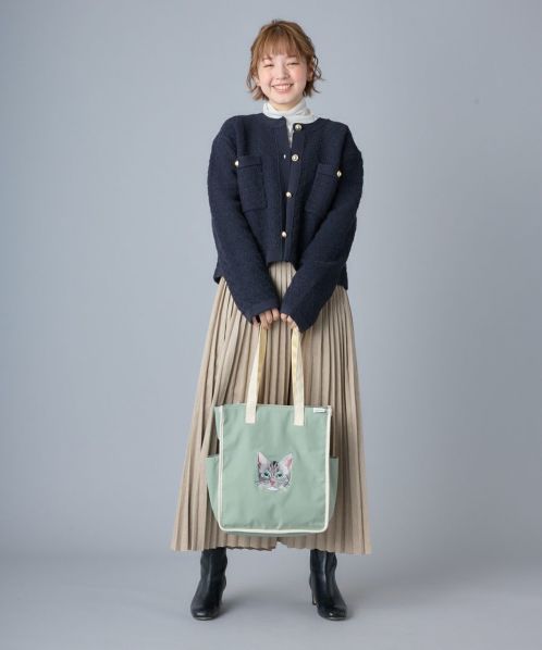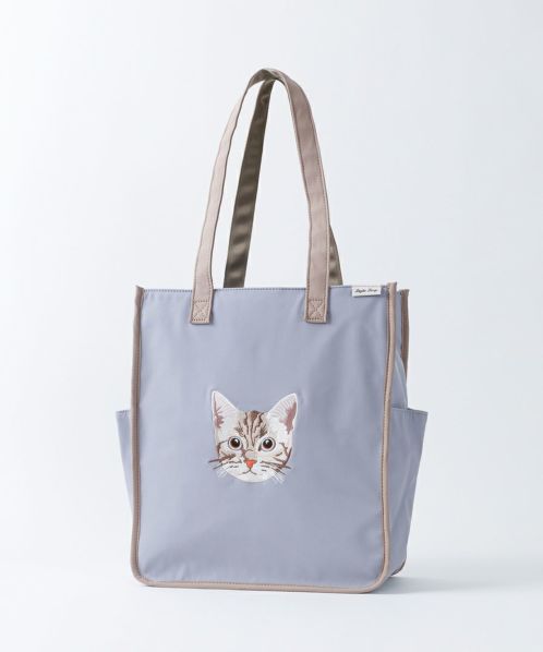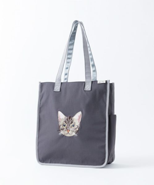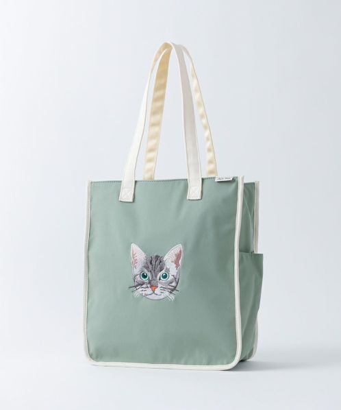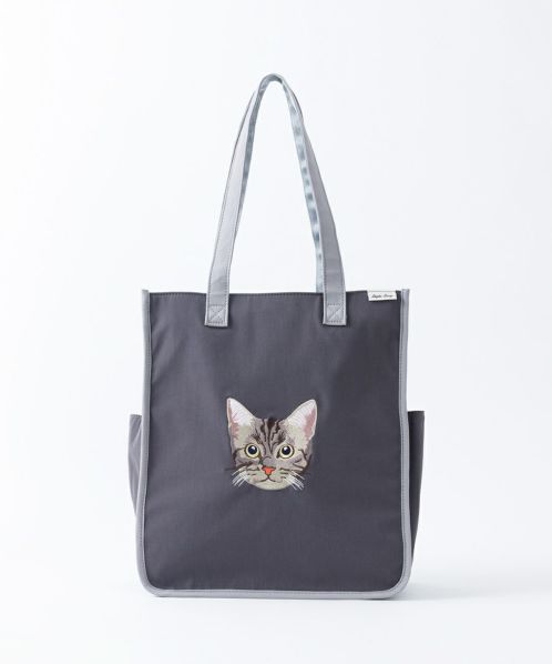 オリジナルの猫モチーフの刺繍が魅力のシリーズ。背面は猫の手がひょっこり現れる遊び心のあるデザイン。手触りの良いコットン調の生地もポイントです。A4の資料が縦に入るサイズのトートバッグ。サイドと背面、内側に5つのポケットが付いた機能性の高いアイテムです。