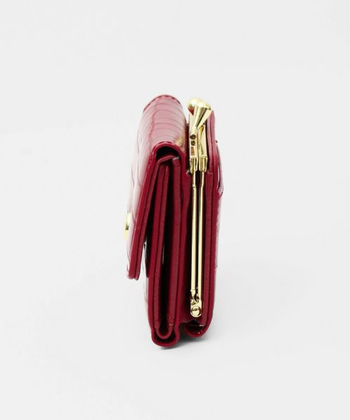 クロコ型押しがま口三折りミニサイフ,LJ-G0841Z,クロコ型押しがま口三折りミニサイフ