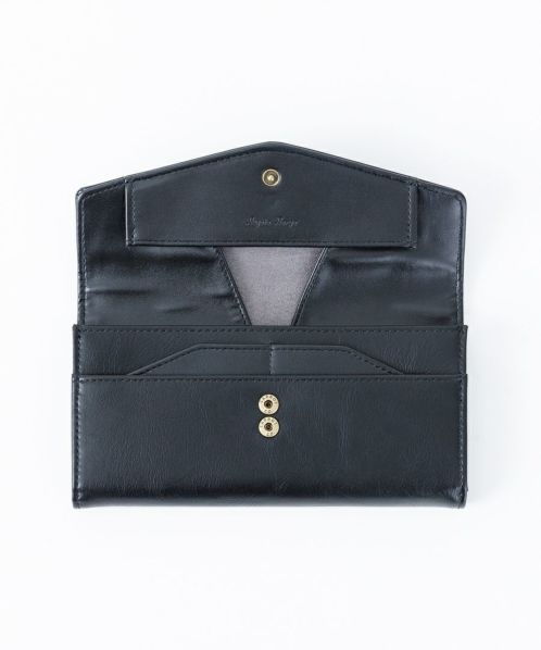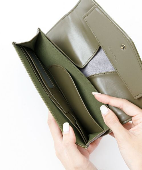 ホックを開けば一目で見える、楽見え、楽だしの秒財布。背面にポケットもあるのでレシートなど収納可能で財布がすっきり◎取り出しやすい切れ込みでカードがすぐ出しやすいのも嬉しいポイントです。