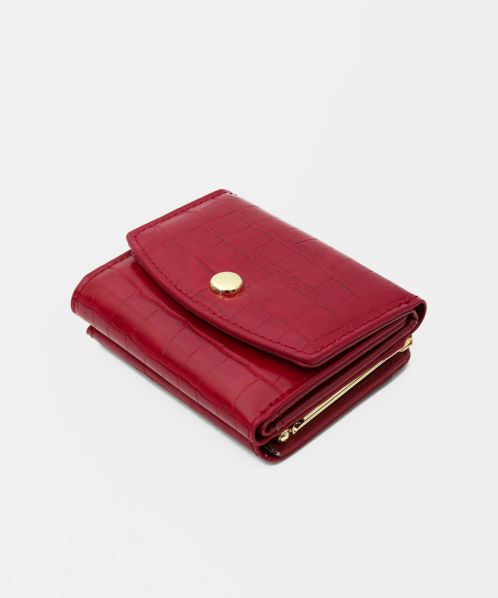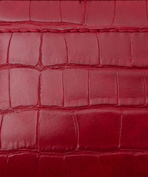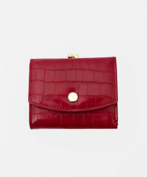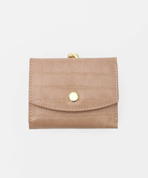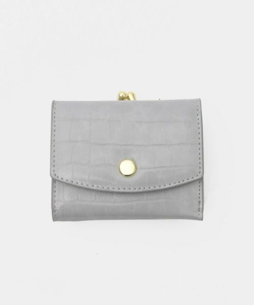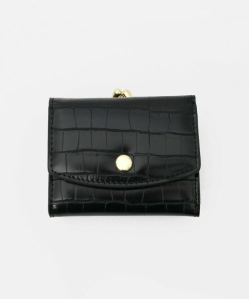 個性的な印象が強いクロコ風の生地を使用したパスケースは使い合わせのゴールドカラーでマイルドな印象に。