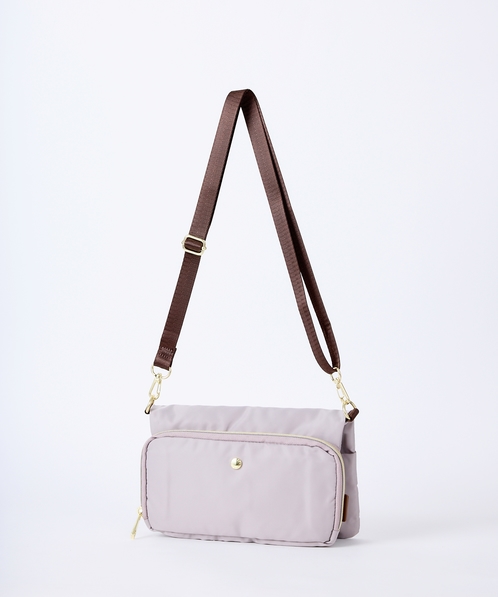 外出する際ピッタリなお財布機能付きショルダーバッグがナイロン素材で登場。撥水加工も施されているので雨や汚れもサッとふけるのが魅力的◎お財布機能はもちろんパスポートや母子手帳も入り旅行や日々のお出かけにもオススメです。ダブルフェイス仕様できれいめとカジュアルふたつの顔が楽しめます。