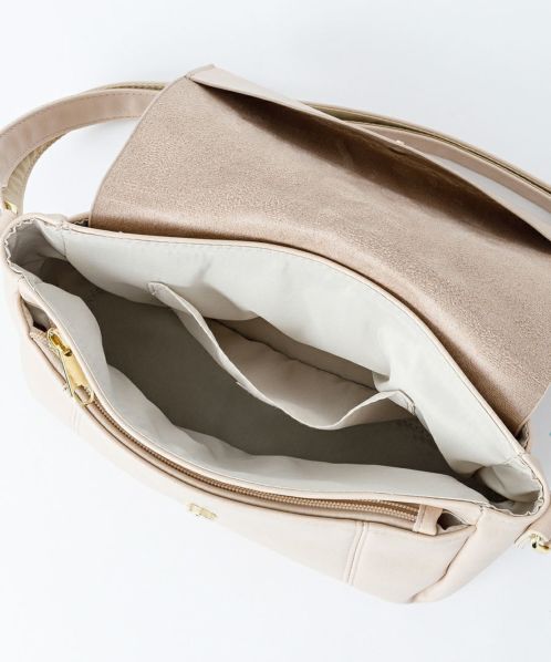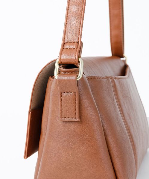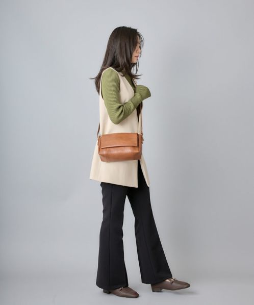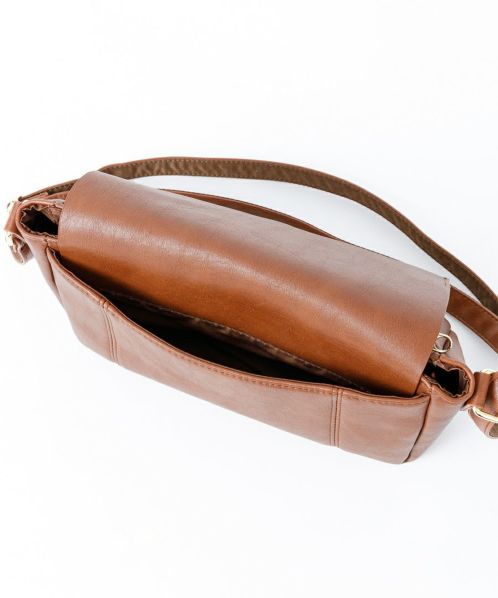 表情のある風合いの良い合皮がポイントのバッグ。カジュアルかつナチュラルな雰囲気で、持つ人を選ばないシンプル&ベーシックな一点。長財布と600mlのペットボトルが同時に入る収納力! 使い勝手の良いファスナーポケットも魅力の一つです!