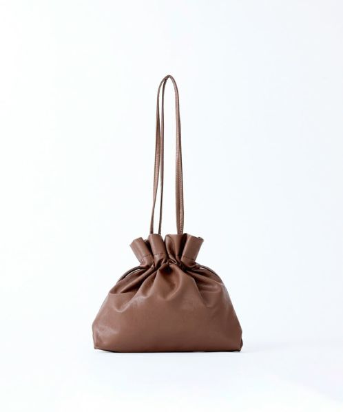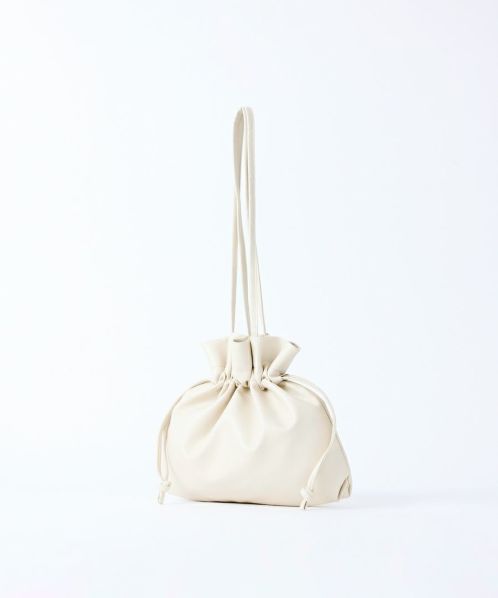 くしゅっと感が今っぽい、愛着のわく巾着バッグ “ぎゅぎゅっトート”。巾着を絞っても、スクエア型で使っても可愛く持てるデザイン! ペットボトルと長財布が収まる小ぶりながら便利なサイズ感。持ち手は肩にしっかりと掛けられる長さを確保しています。持ったまま巾着を開け閉めできるため、使い勝手も抜群! 汚れてしまっても洗える合皮の素材というのも嬉しいポイントです。