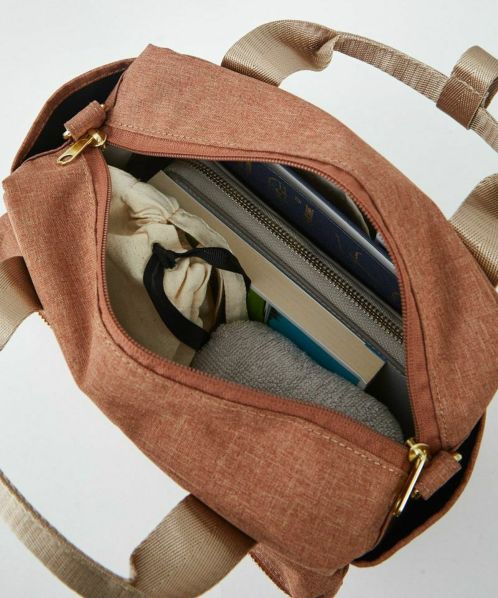 牛革とゴールドの金具、光沢のあるテープ使いで上品さ底上げしています。500mlペットボトルや長財布がすっぽり入るサイズ感。お出かけに必要な荷物がきちんと入ります。