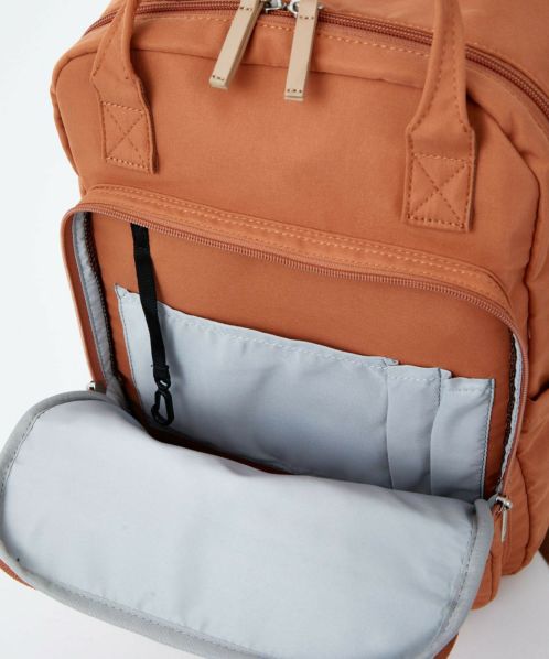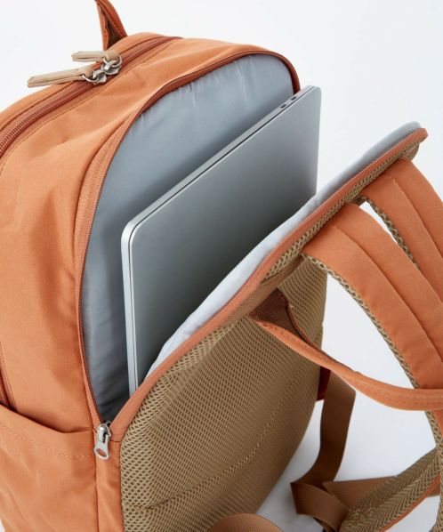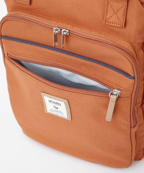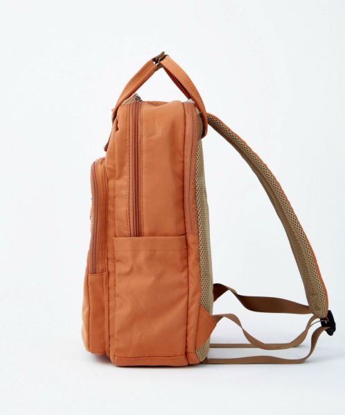 バイカラーのパイピングデザインと使い合わせの合皮がアクセントになったスクエア型のリュック。前面のポケットは大きく開けやすく、中身の出し入れがしやすくなっております。背面にはPCが収納可能でA4サイズで通勤や通学にも最適です。